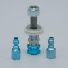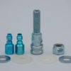 Quick connect installation for remote electrode reels or custom installations where threads are not provided. 9/16″-18 male threads. Kit includes with washers and nut. Kit also includes 2 Blue PE Bayonets (A-1962).
